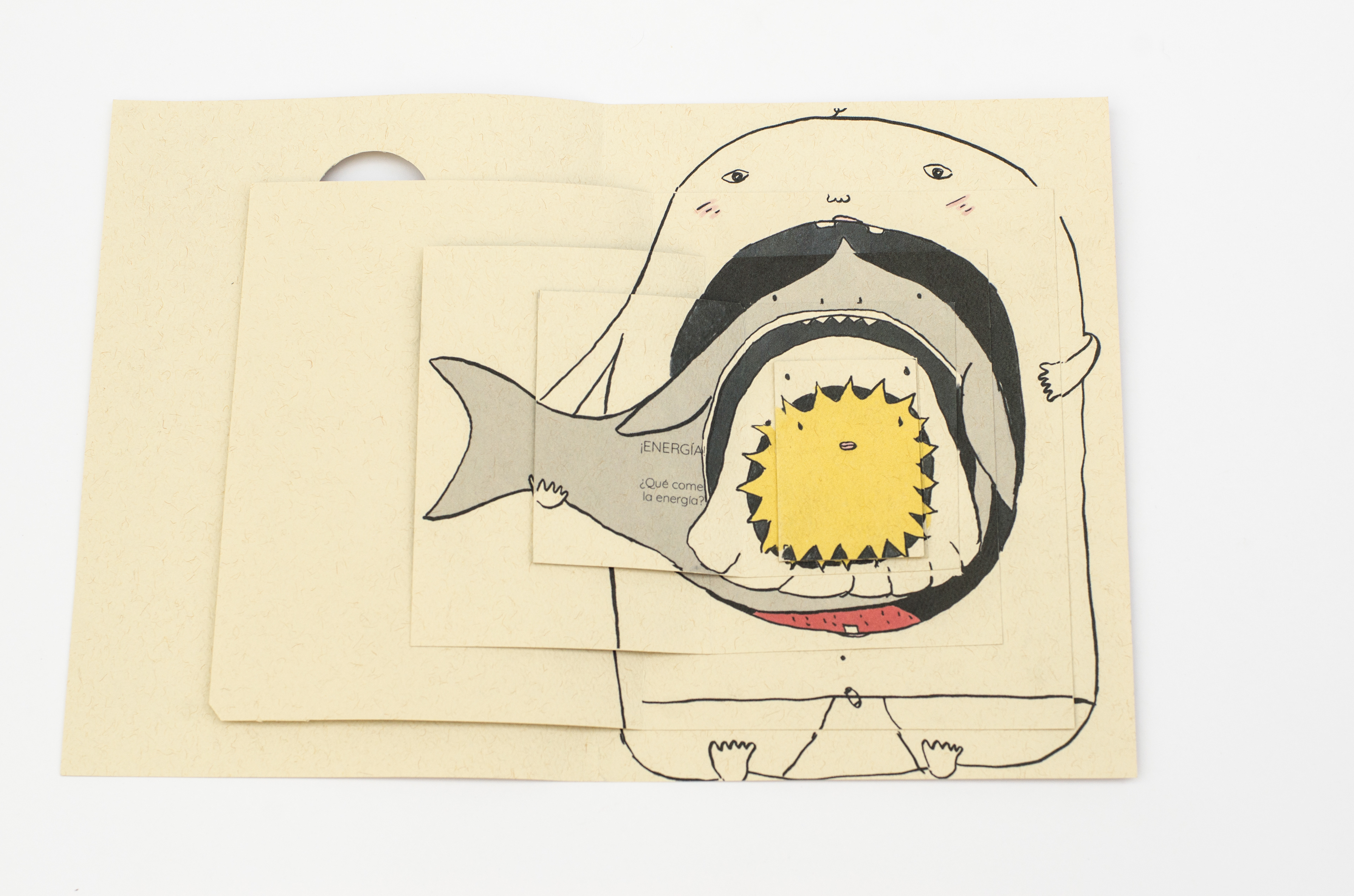 The first version of this book was each animal/being with a flap on its belly to reveal that it ate.During the design process, that changed until it finished in this version, where I shortened the selection to those that I could relate to each other, in order to discover a kind of food chain.